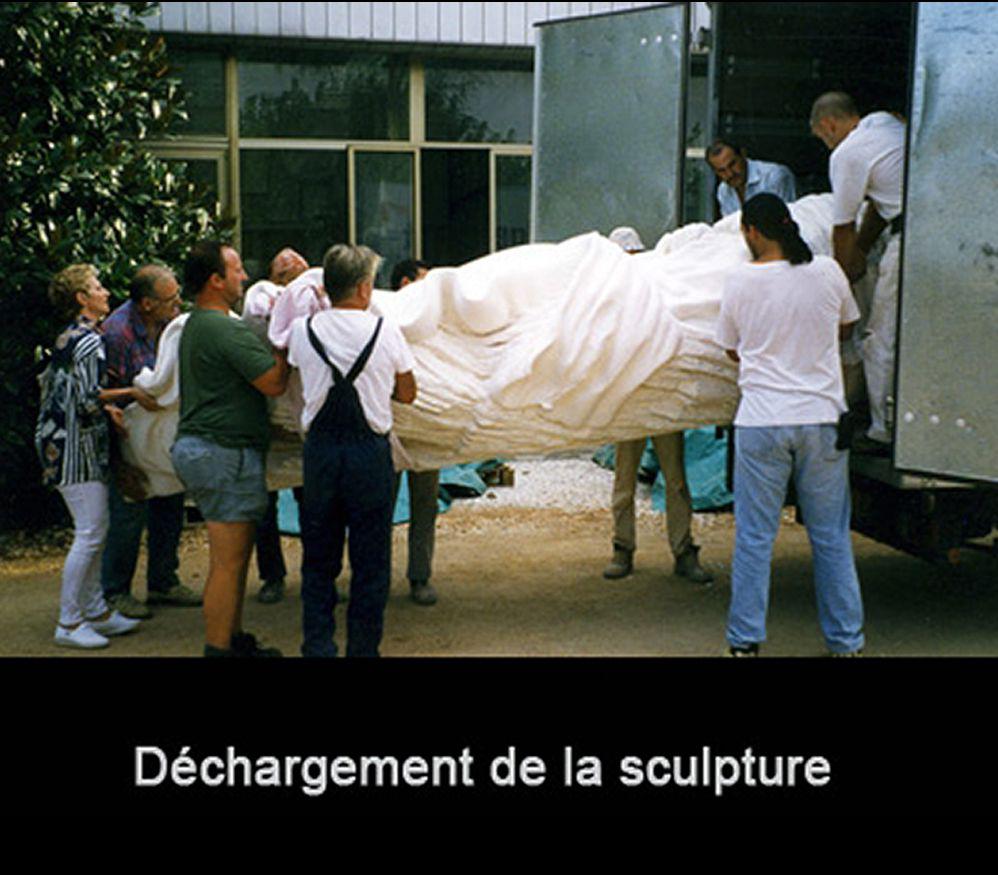 Puis, plusieurs tonnes sont acheminées dans mon atelier à Aups (Var) par des camions, comme pour les dix-sept Stations du Chemin de Croix, pour lesquelles il a fallu extraire près de cent tonnes de marbre." Maria de Faykod