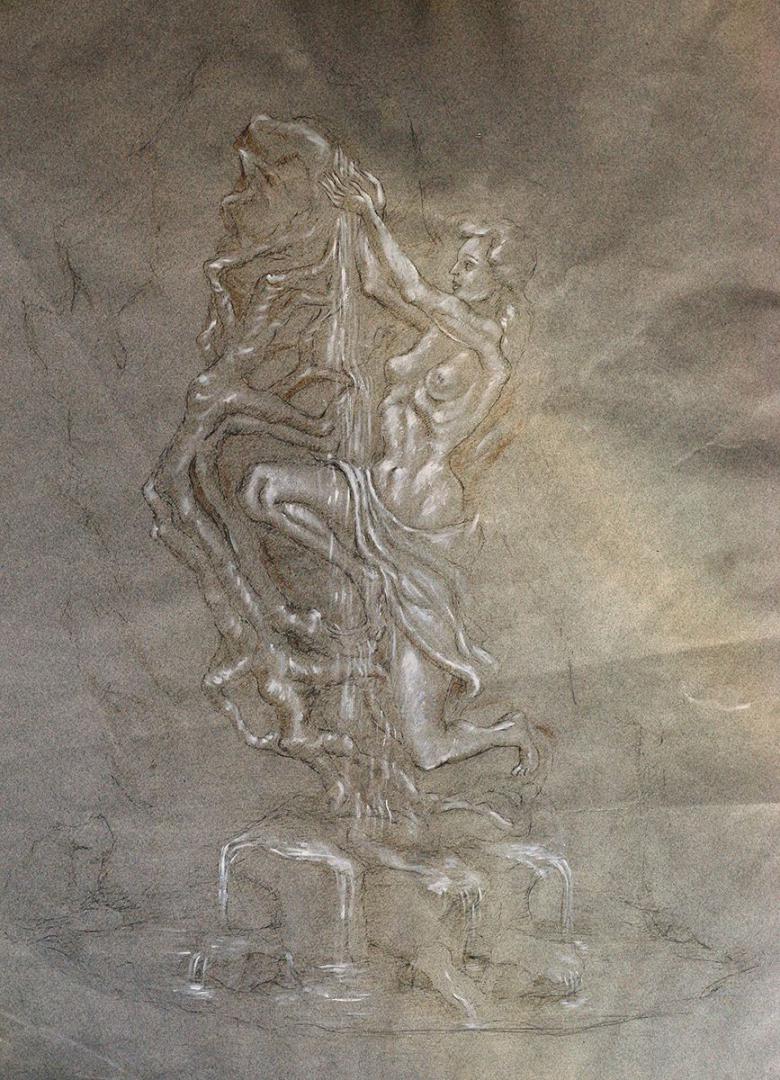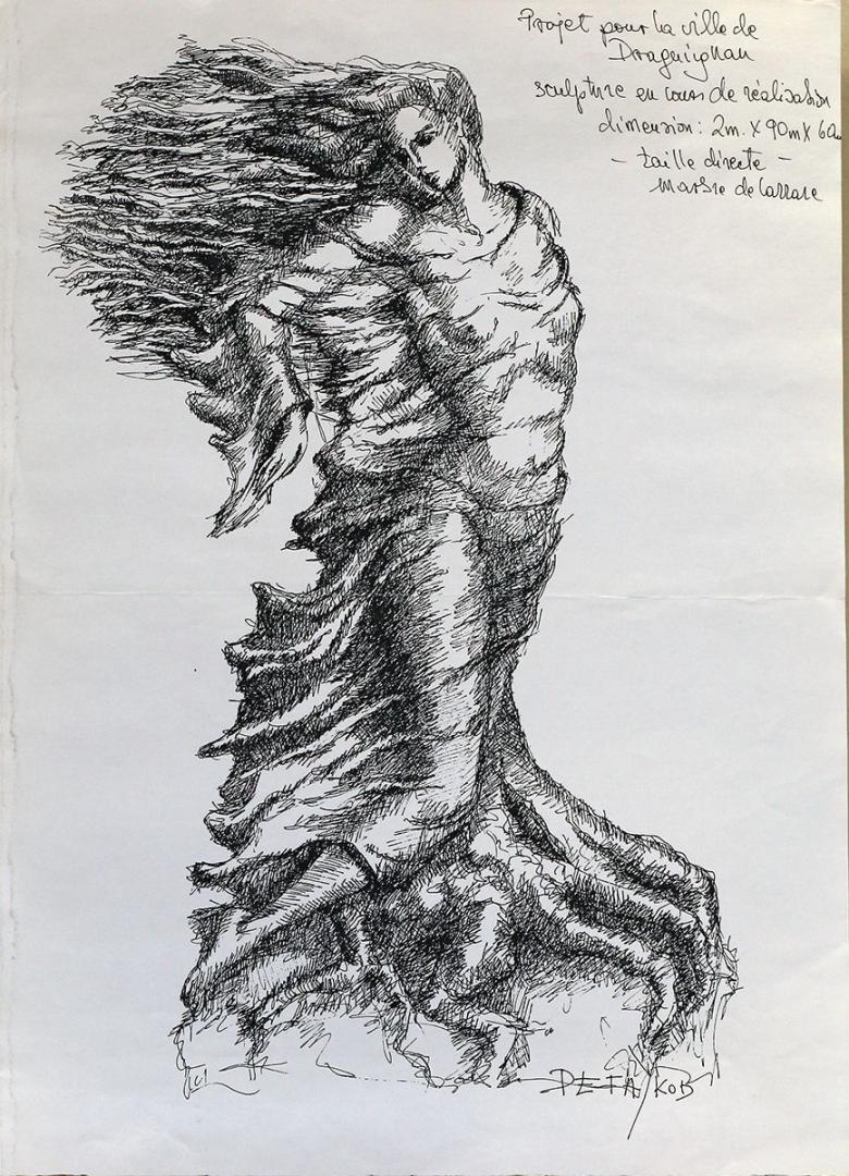 Maria de Faykod réalise ses sculptures avec les techniques de la taille directe; c’est une création subtile et complexe dans le marbre, sans esquisses préparatoires.