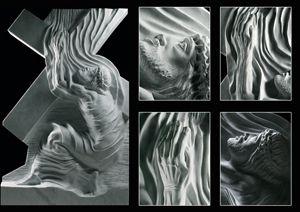 Les jeux d’ombre et de lumière des sculptures avec les textes de méditation, en harmonie avec la musique, laissent traverser, soudain, une autre lumière qui nous accompagne dans notre perception de cette œuvre d’art.