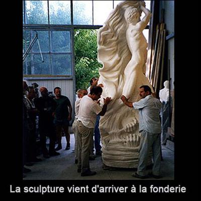 Puis, plusieurs tonnes sont acheminées dans mon atelier à Aups (Var) par des camions, comme pour les dix-sept Stations du Chemin de Croix, pour lesquelles il a fallu extraire près de cent tonnes de marbre." Maria de Faykod